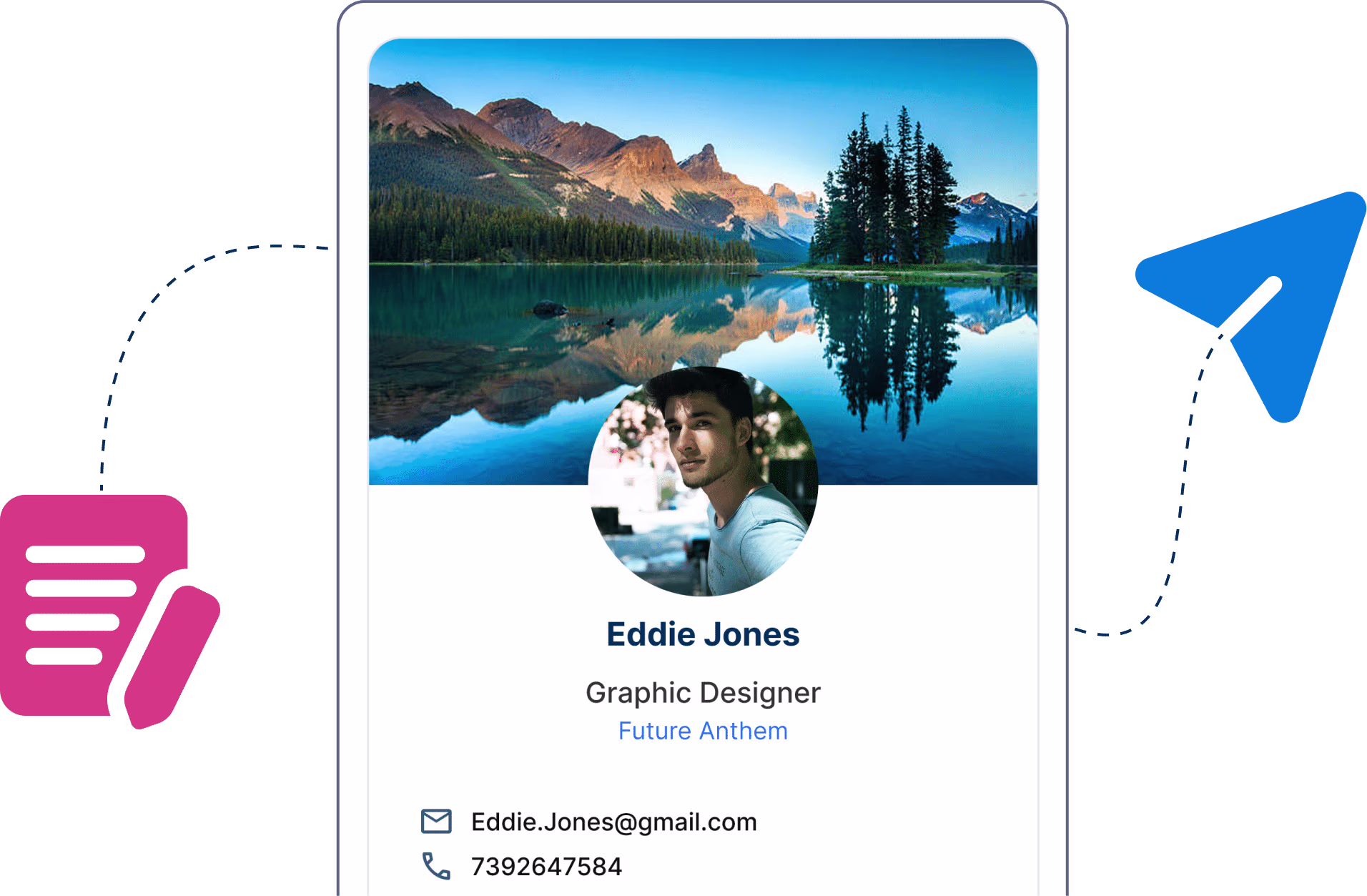 Design a personalized virtual business card with your photo, logo, and social links. Share it instantly via QR code, direct link, or Apple Wallet—no printing required.